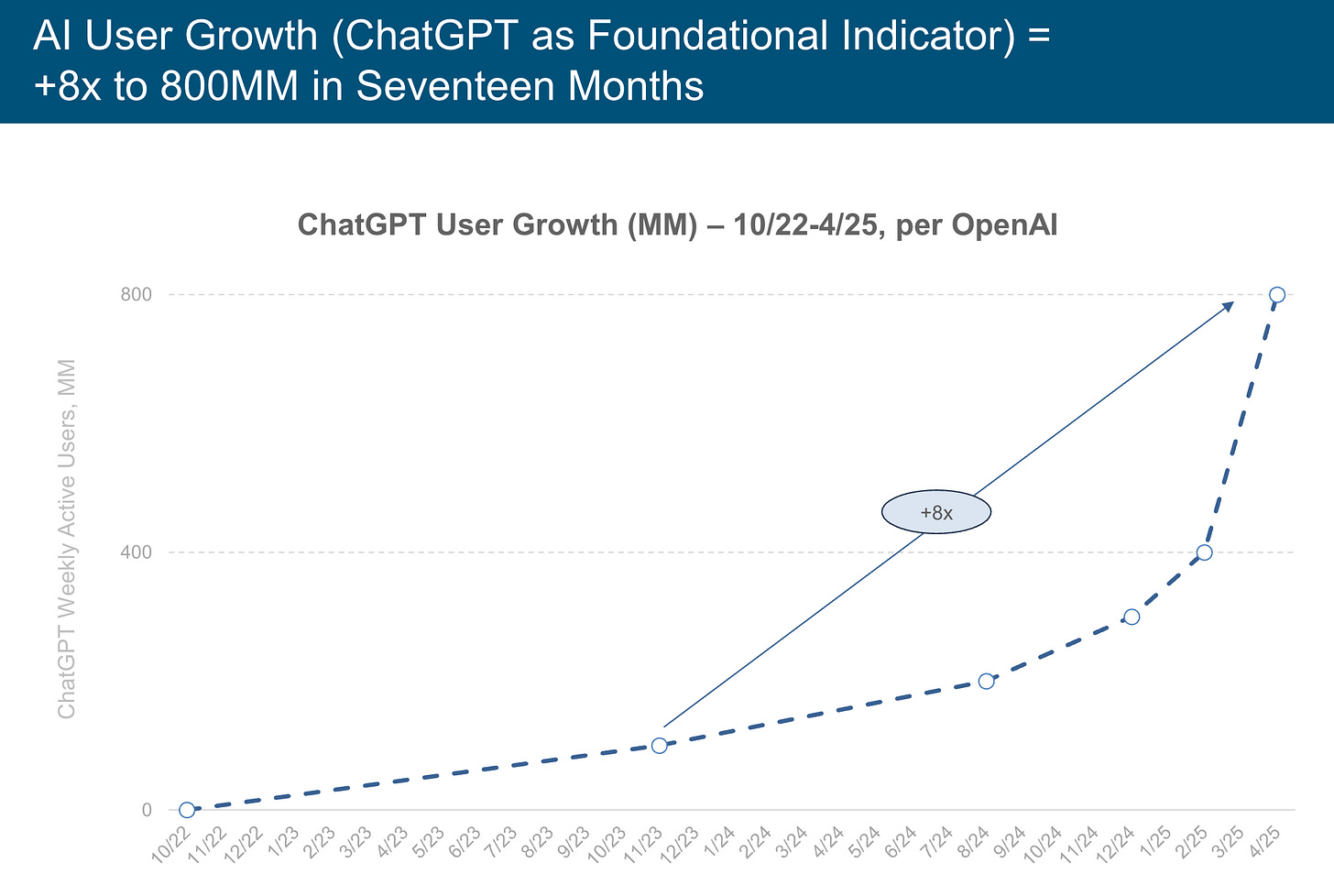 to give you a better understanding of the trends. I’m just going to throw out some charts that piqued my interest below — they should speak for themselves. The TLDR on this is that everything is going exponential in both directions. Users, computation power, and energy demand are growing. Costs are falling.🧐 Riddle of the Week